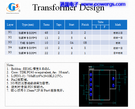 输入:90V-264V输出:12V1.5A主要元件:变压器:EE16 IC:G1138P 肖特基